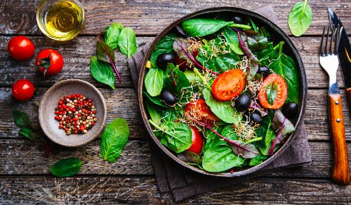 frischer Eisbergsalat mit Tomaten, Zwiebeln, Gurken, Paprika und Mais